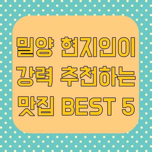 밀양 현지인이 강력 추천하는 맛집 BEST 5