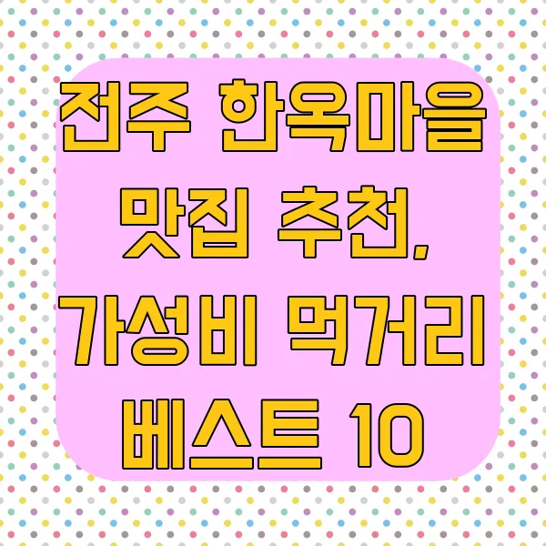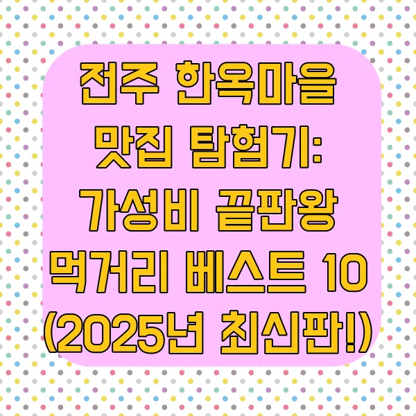 전주 한옥마을 맛집 탐험기: 가성비 끝판왕 먹거리 베스트 10 (2025년 최신판!)