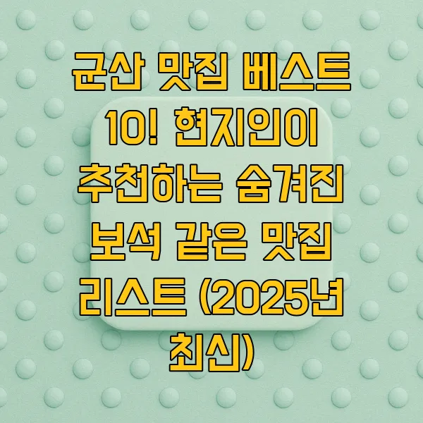 군산 맛집 베스트 10! 현지인이 추천하는 숨겨진 보석💎 같은 맛집 리스트 (2025년 최신)