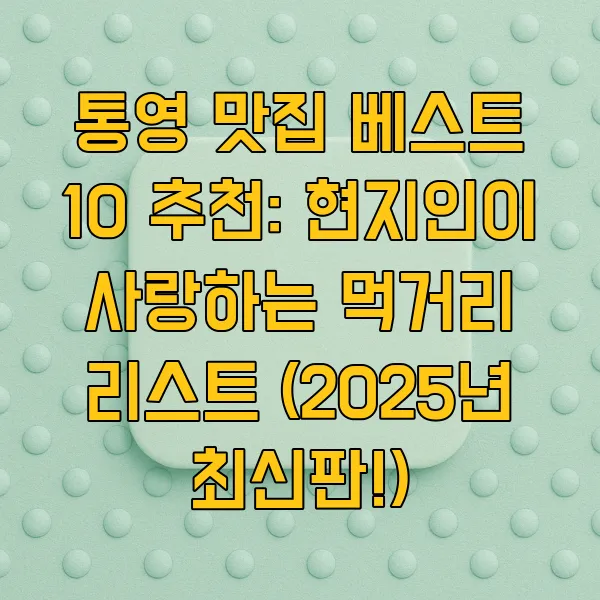 통영 맛집 베스트 10 추천: 현지인이 사랑하는 먹거리 리스트 (2025년 최신판!)
